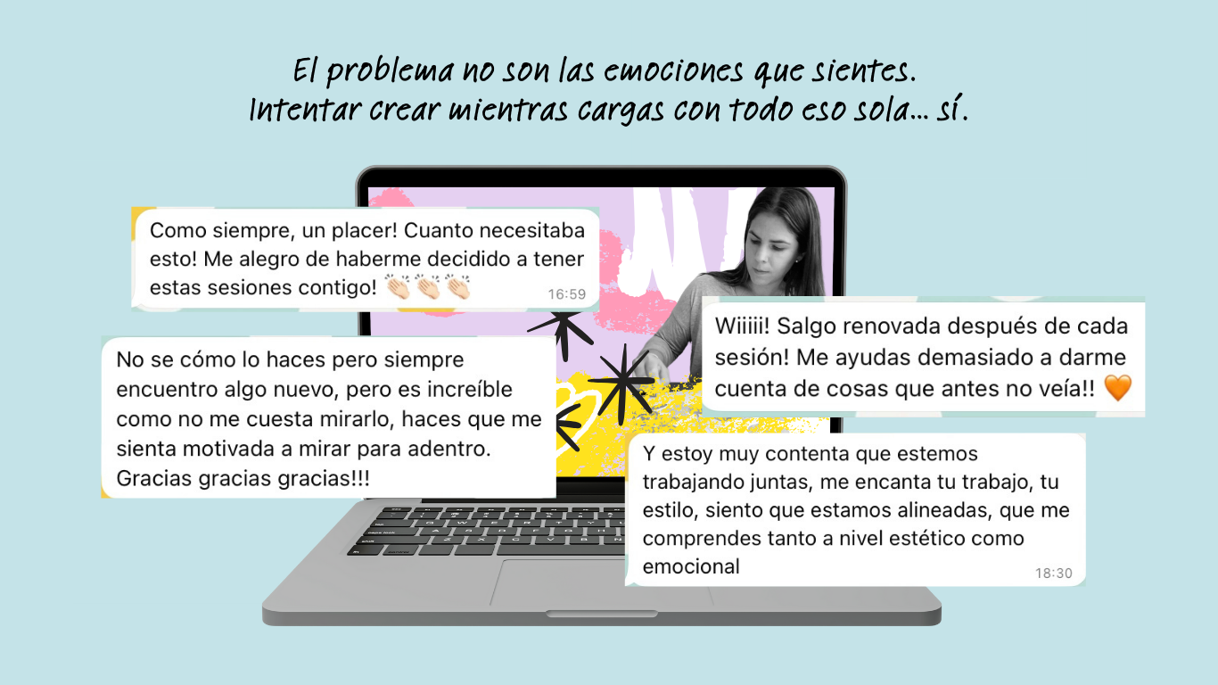 Estoy aquí porque conozco muy bien lo que sientes. Yo también estuve ahí y ahora quiero acompañarte y darte lo que a mí me hubiera gustado tener desde que empecé en el mundo creativo.